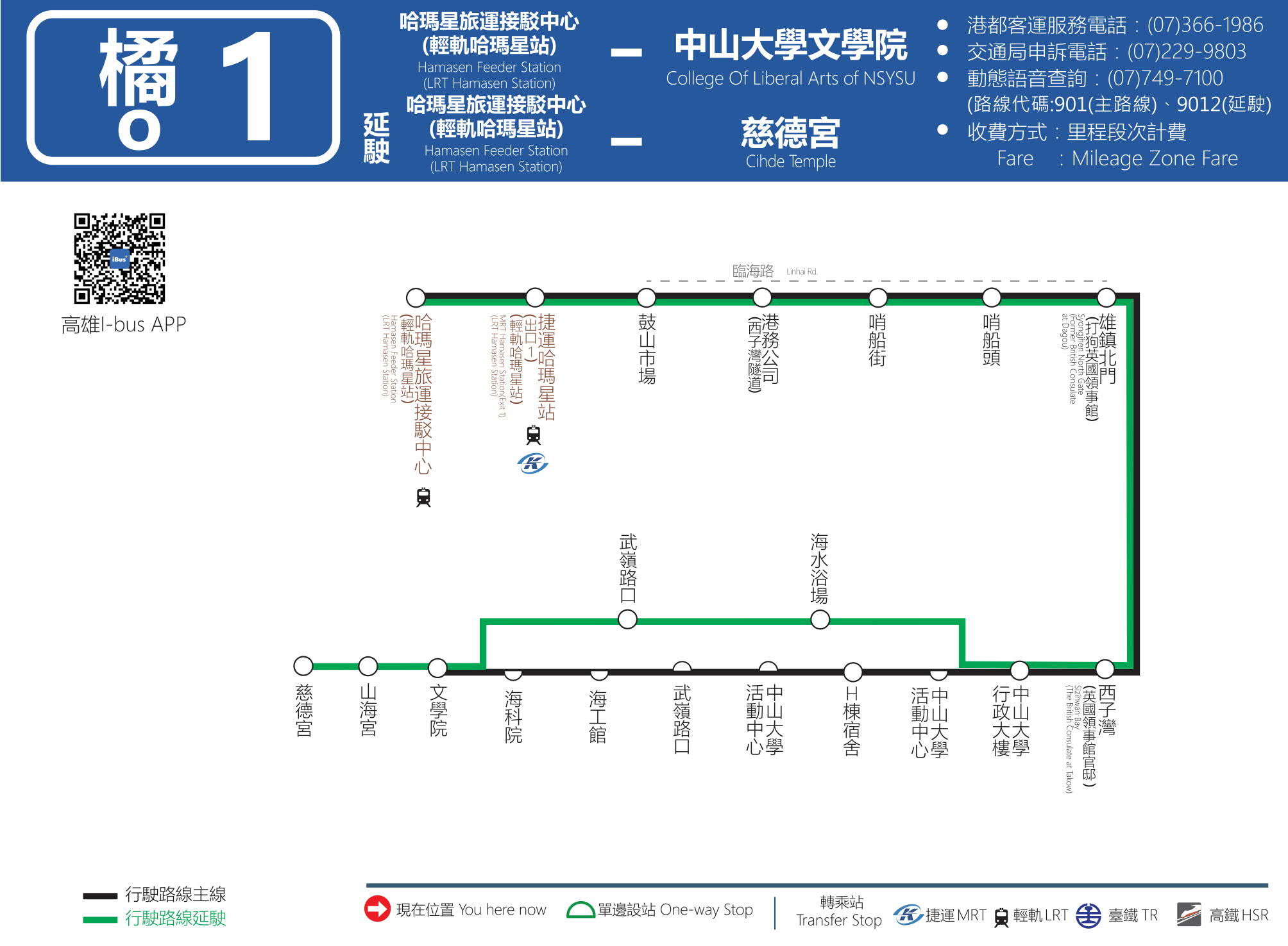 114年11月15日(週六)起 橘1路 配合港區整建工程 調整起訖站位至哈瑪星旅運接駁中心(輕軌哈瑪星站),造成不便敬請見諒。 ![]() 橘1路 1141115起時刻表 如有行車問題,請撥打 (07)366-1986 ,謝謝。 |