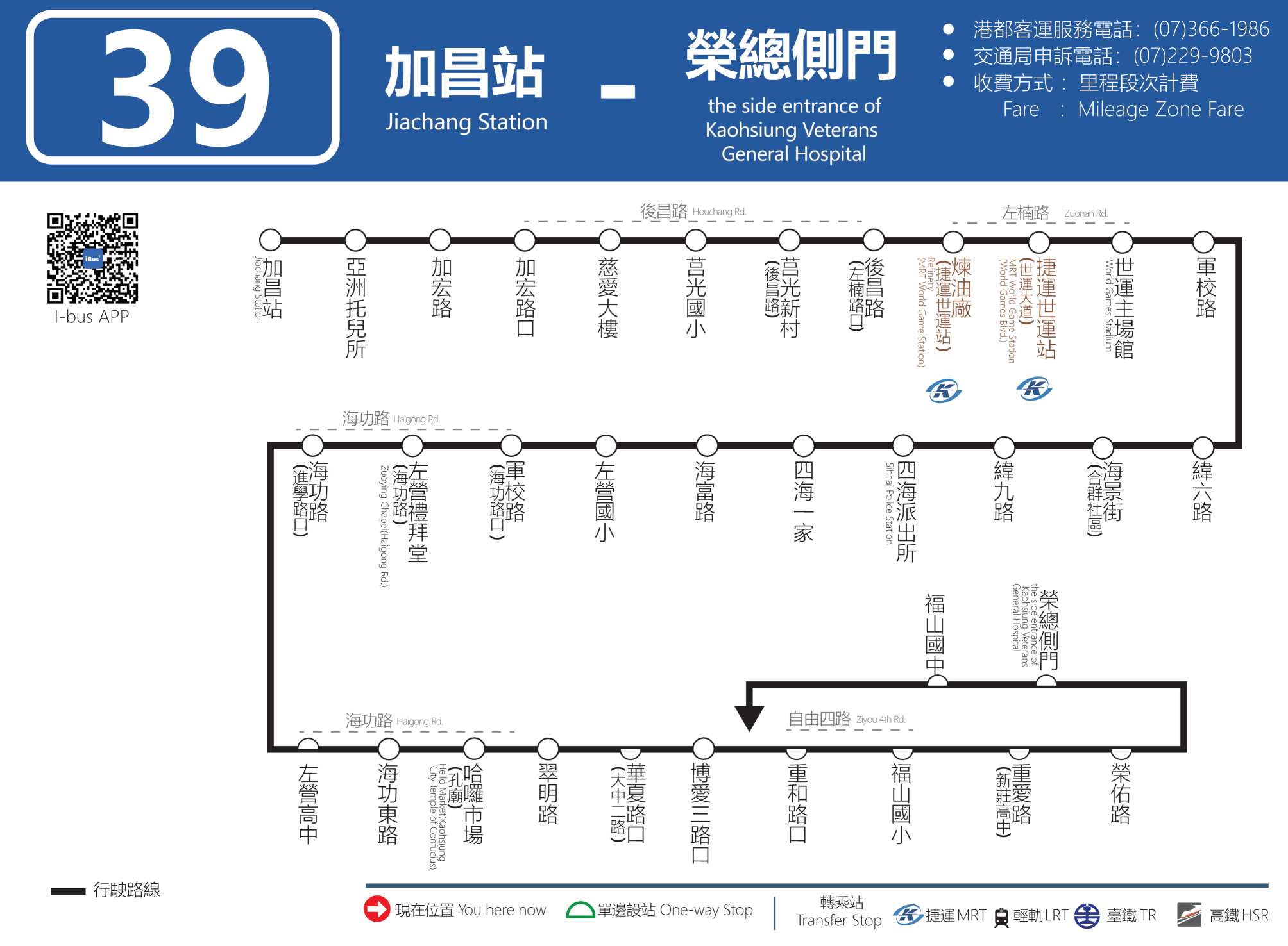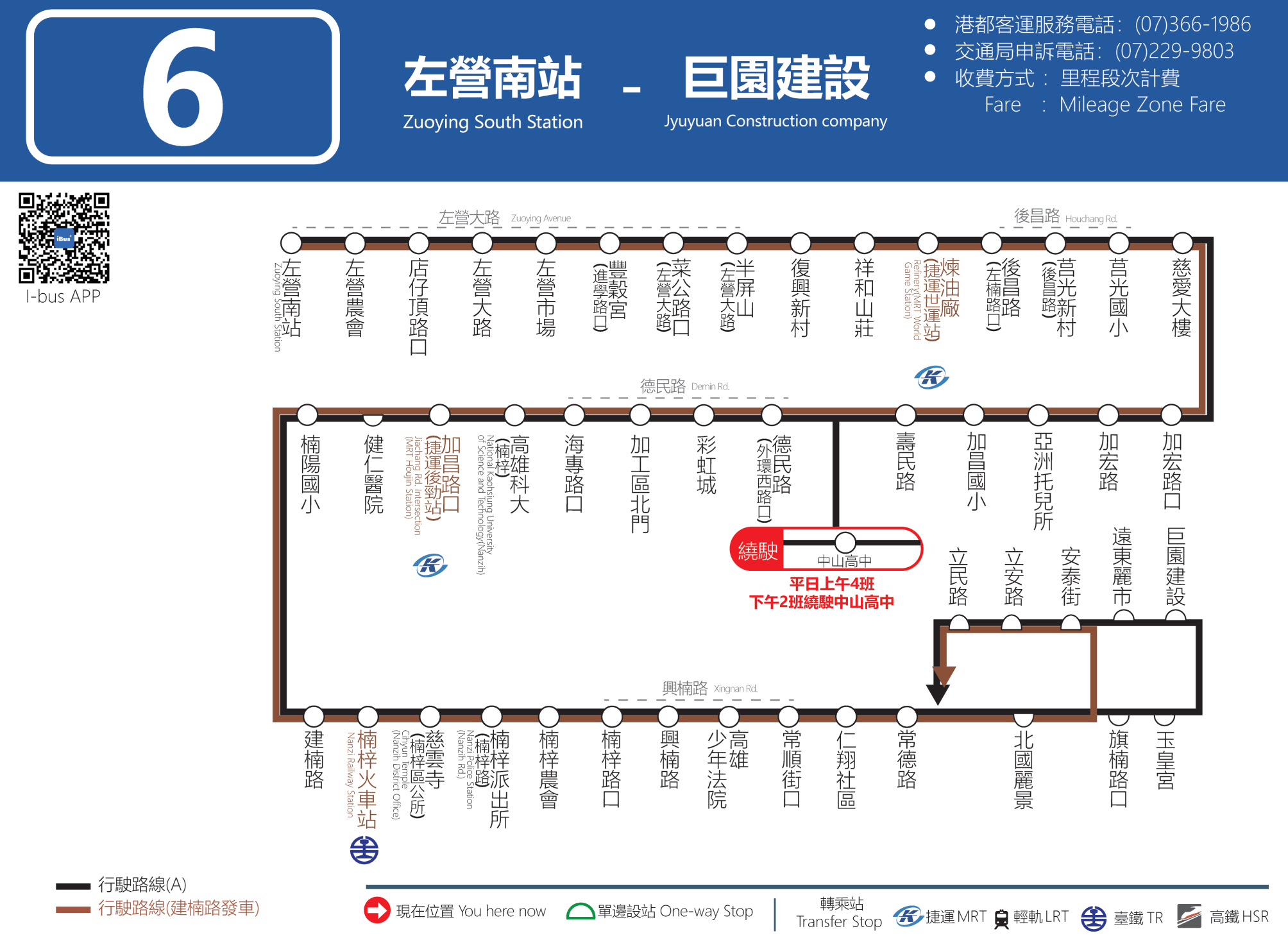 新經一路 等兩站位,歡迎多加利用。![]() 如有行車問題,請撥打 (07)366-1986 ,謝謝。 |
